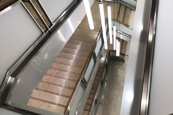 Our company specializes in the fabrication and installation of high quality, custom glass railing for a variety of uses, including escalators, staircases, guard rails, and decking. Add a decorative touch to your business through using glass to complement your staircase and balcony. We have created and installed glass railings and custom staircases for a large number hotels, businesses, and private residences.